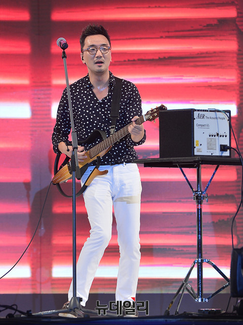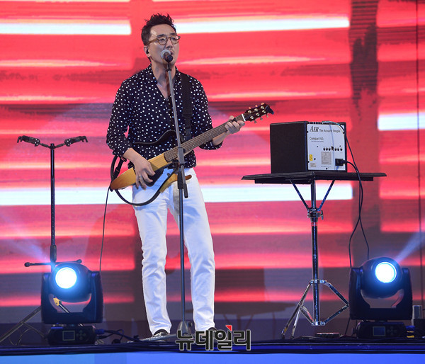 이한철밴드가 27일 오후 서울 올림픽체조경기장에서 진행된 '더불어민주당 제2차 정기전국대의원대회'에 참석해 선거결과를 앞두고 축하공연을 하고 있다.