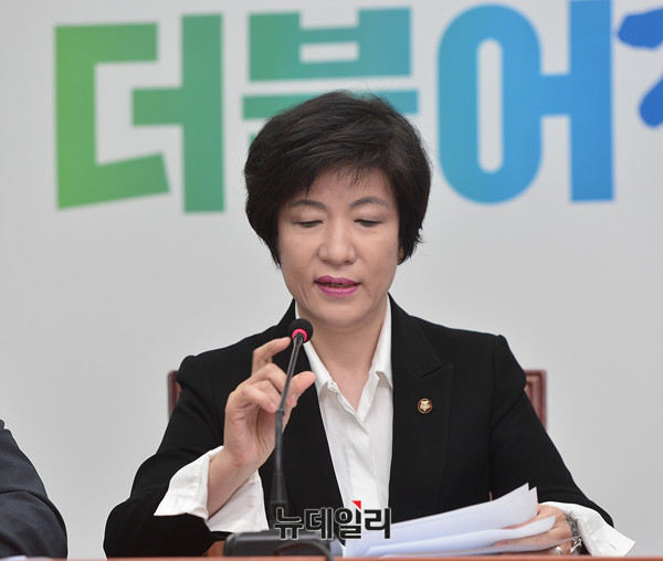 더불어민주당 김영주 최고위원이 29일 오후 국회 더불어민주당 대표회의실에서 열린 첫 최고위원회의에 참석해 모두 발언하고 있다.