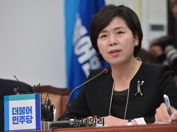 더불어민주당 양향자 여성최고위원이 29일 오후 국회 더불어민주당 대표회의실에서 열린 첫 최고위원회의에 참석해 발언하고 있다.
