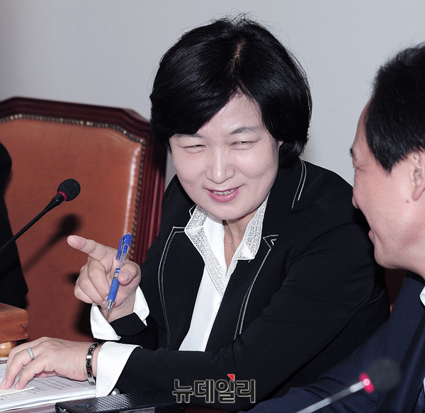 [포토] 추미애 신임 당대표, 더불어민주당 첫 최고위회의 참석