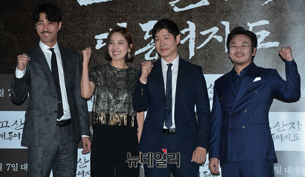 배우 차승원, 신동미, 유준상, 김인권이 30일 오후 서울 성동구 왕십리CGV에서 열린 영화 '고산자, 대동여지도(감독 강우석, 박범신 著)' 언론시사회에 참석해 포토타임을 갖고 있다.