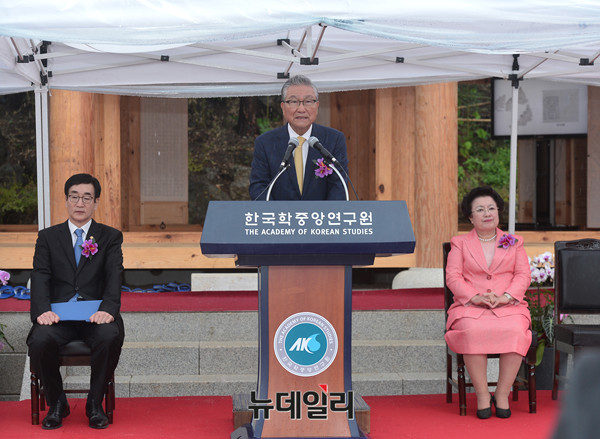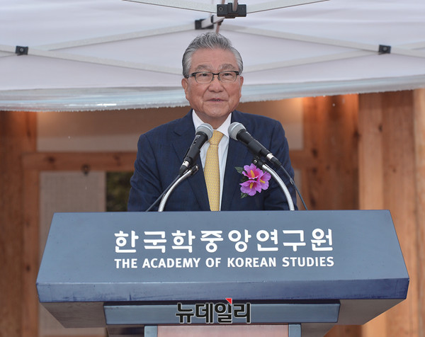 한국학중앙연구원 손병두 이사장이 31일 오후 경기 성남시 한국학중앙연구원 내 청계학당에서 진행된 '한국학중앙연구원 청계학당' 준공 기념식에서 격려사를 하고 있다. 이날 준공기념식에는 이준식 교육부장관, 나선화 문화재청장, 이배용 원장, 손병두 이사장 등 교직원 및 대학원생 등이 참석했다.