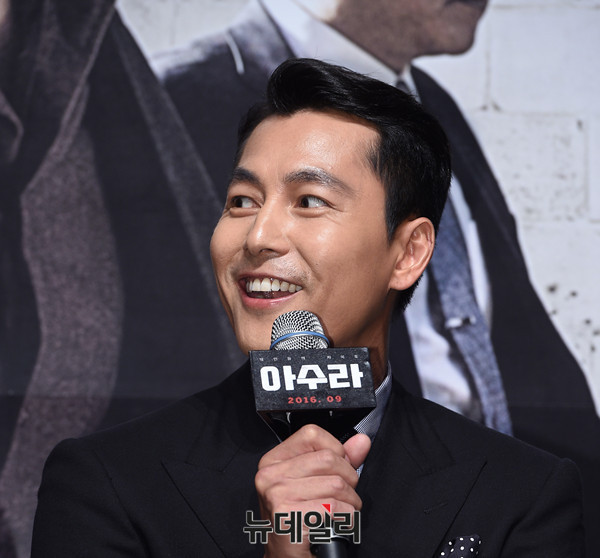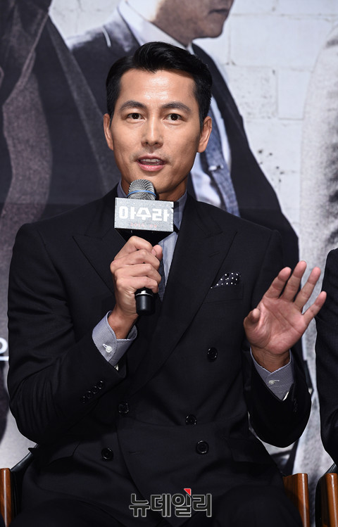 영화 '아수라(감독 김성수)'에서 생계형 비리형사 한도경 역을 맡은 배우 정우성이 1일 오전 압구정CGV에서 열린 기자간담회에 참석해 질문에 답하고 있다.