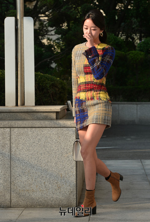 모델 강승현이 1일 오후 갤러리아백화점 명품관에서 열린 브랜드 '안야 힌드마치(Anya Hindmarch)' 입점 기념행사에 입장하고 있다.