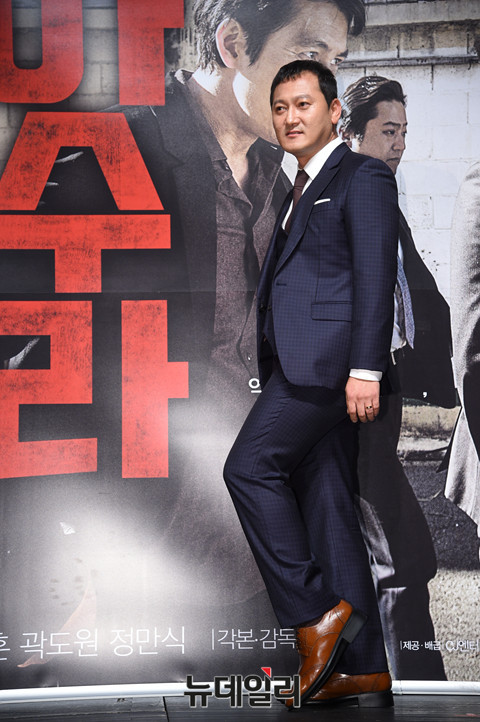 영화 '아수라(감독 김성수)'에서 도창학 역을 맡은 배우 정만식이 1일 오전 압구정 CGV에서 열린 기자간담회에 참석해 포토타임을 갖고 있다.