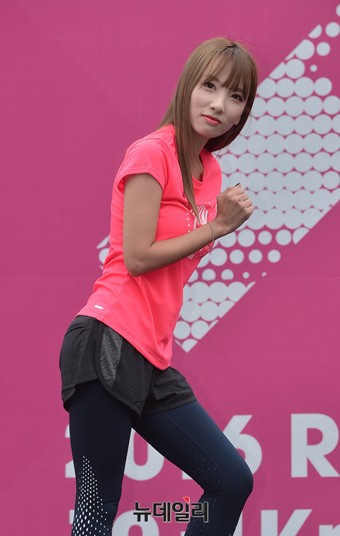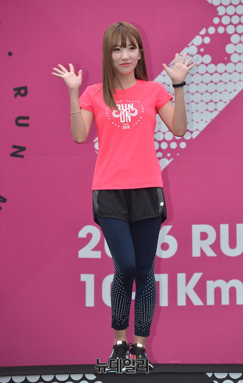 걸그룹 레인보우 지숙이 4일 오후 서울 여의도공원에서 열린 '2016 런온 서울(2016 RUN ON SEOUL)'에 참가해 포토타임을 갖고 있다.
