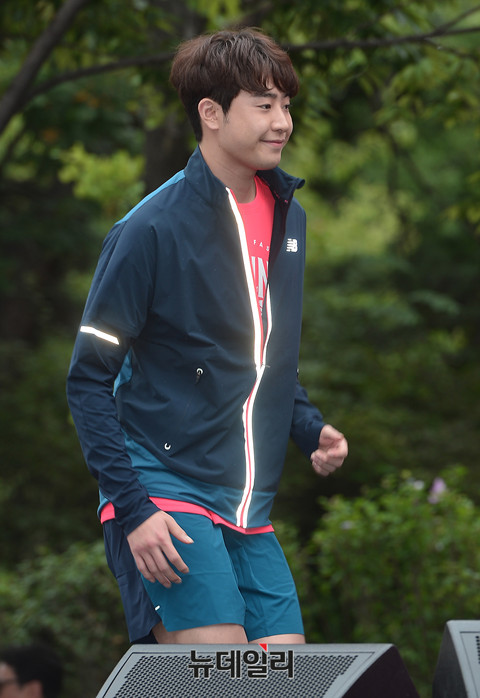 배우 박민우가 4일 오후 서울 여의도공원에서 열린 '2016 런온 서울(2016 RUN ON SEOUL)'에 참가해 포토타임을 갖고 있다.
