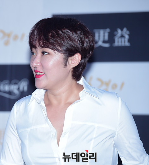 개그우먼 김현숙이 6일 오후 서울 광진구 쉐라톤워커힐 리버파크에서 열린 'Beauty beyond beauty Jil Gyung Yi' 브랜드 쇼에 참석해 손을 흔들고 있다.