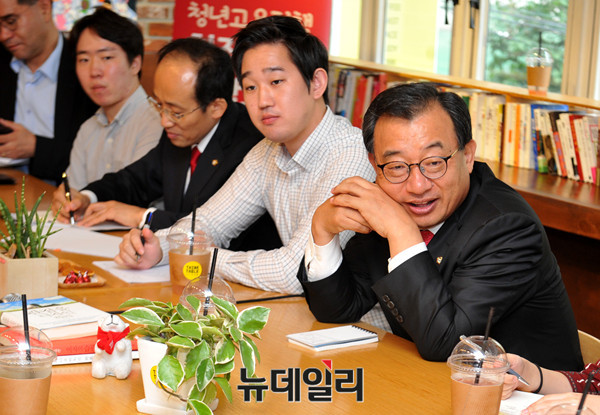 새누리당 이정현 대표가 7일 오후 서울 마포구 서교동의 한 카페에서 열린 '청년고용정책 현장 간담회'에 참석해 청년들과 대화를 나누고 있다.