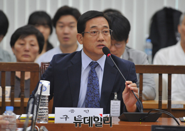 구은수 전 서울지방 경찰청장이 12일 오전 국회 안행위에서 열린 '백남기 농민 청문회'에 증인으로 출석해 의원들의 질문에 답하고 있다.