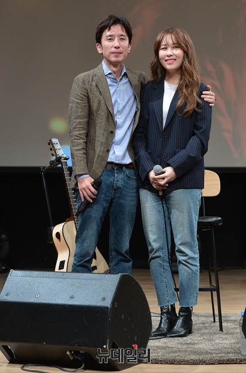 유희열이 19일 오전 서울 강남구 일지아트홀에서 열린 권진아 첫 정규 앨범 '웃긴 밤' 쇼케이스에 방문해 포토타임을 갖고 있다.
