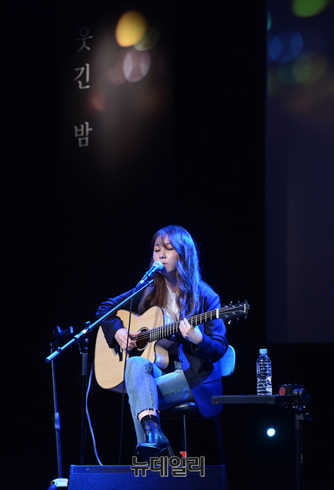 권진아가 19일 오전 서울 강남구 일지아트홀에서 첫 정규 앨범 '웃긴 밤' 쇼케이스를 갖고, 가요계 정식 데뷔를 알렸다. 이날 권진아는 타이틀 곡 '끝'과 직접 작사, 작곡한 곡 '쪽쪽', 스무 살의 사랑을 표현한 곡 '스물'을 열창했다.