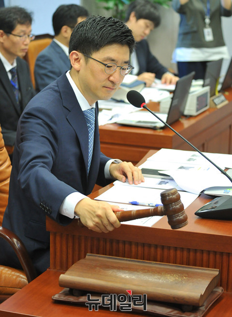 정치발전특별위원회 김세연 위원장이 19일 국회에서 열린 전체회의에서 의사봉을 두드리고 있다.