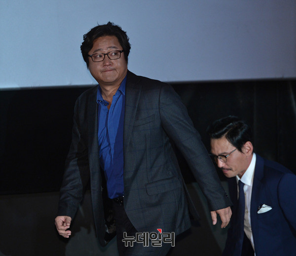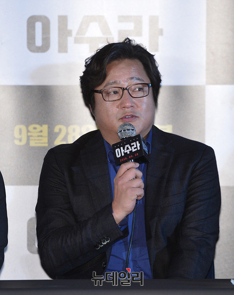 배우 곽도원이 21일 오후 서울 성동구 왕십리CGV에서 열린 영화 '아수라(ASURA: The City of MAdness)' 언론시사회에서 질문에 답하고 있다.