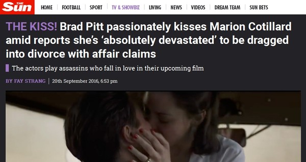 보도에 따르면 브래드 피트는 마치 싱글처럼 파티를 벌이고 마리옹 꼬띠아르와 애정 행각을 벌인 것으로 전해졌다.