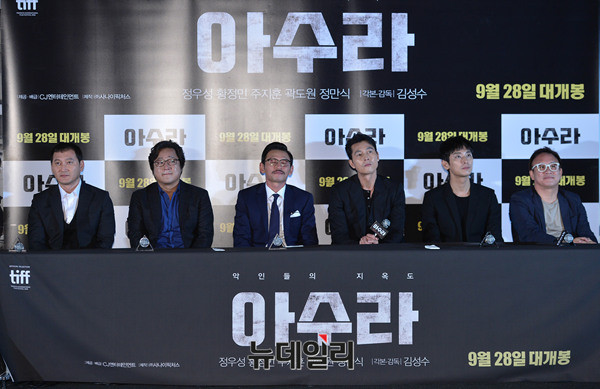 영화 '아수라'는 강력계 형사 한도경(정우성)과 악덕 시장 박성배(황정민), 독종 검사 김차인(곽도원)이 각자의 이익과 목적을 위해 벌이는 이야기를 담고 있다. 오는 28일 개봉 예정.