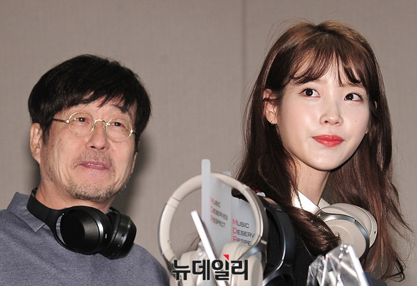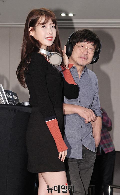소니오디오 모델 가수 아이유와 김창완이 21일 오전 서울 중구 더플라자호텔에서 진행된 신제품 헤드폰 MDR-1000X 출시 기념행사에 참석했다. 이날 김창완은 소니오디오 새모델로 처음 공개됐다.