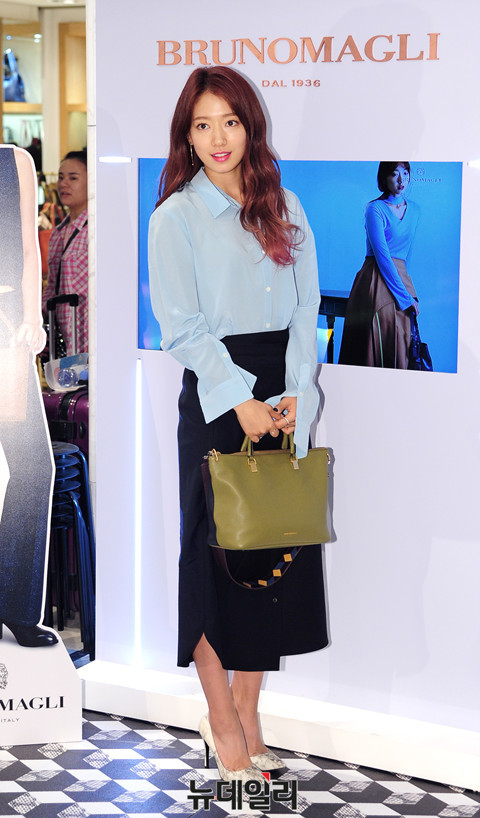 배우 박신혜가 22일 오후 서울 중구 롯데백화점 본점에서 열린 이탈리아 패션 브랜드 '브루노말리(BRUNOMAGLI)' 팝업스토어 오픈 행사에 참석해 포즈를 취하고 있다.