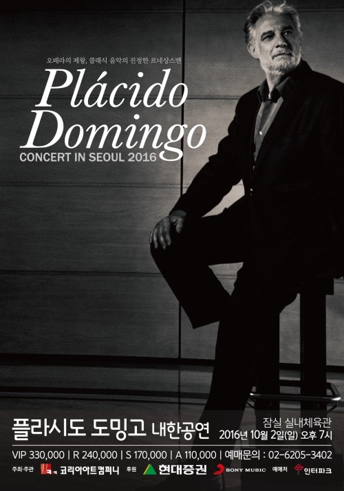 '20세기 최고의 테너' 플라시도 도밍고가 오는 10월 2일 내한공연을 연다.올해 75세를 맞은 플라시도 도밍고는 1991년 이후 5번의 내한공연을 가진 바 있다. 그는 테너와 바리톤을 영역을 오갈 뿐 아니라, 클래식과 크로스오버, 뮤지컬 넘버 등의 장르를 넘어서며 지난 50여 년 간 전 세계 음악인들의 사랑을 독차지해왔다.어쩌면 마지막이 될지도 모를 이번 내한 공연에는 테너 김건우와 문세훈, 소프라노 강혜명과 박혜상, 지휘에 유진 콘, 연주는 프라임필하모닉 오케스트라가 맡는다.도밍고는 이번 공연에 성악가로서, 지휘자로서 다양한 모습을 보여줄 예정이다. 1부는 이탈리아 오페라 아리아의 정수를 맛볼 수 있다. 도밍고는 베르디의 '가면무도회' 중에서 '그대는 내 명예를 더럽혔도다'로 공연 시작을 알린다.김건우와 함께 비제의 오페라 '진주조개잡이' 중 테너와 바리톤의 이중창 '성스러운 사원 안에서', 테너 문세훈과는 베르디의 '돈 카를로' 중 '우리는 함께 살고 함께 죽는다', 소프라노 박혜상과 도니제티의 '람메르무어의 루치아' 중 '창백한 빛이 내얼굴에 비치네'를 부른다.2부에서는 지휘자로서 문세훈과 강혜명, 김건우의 주옥 같은 아리아를 지휘하며 후배 성악가들을 리드한다. '베사메무쵸', 영화 '마이 페어 레이디'의 'On the Street Where you live'를 비롯해 레하르의 오페라 '유쾌한 미망인'의 '왈츠 듀엣'을 박혜상과 함께 부르는 등 친숙한 작품들을 들려준다.'플라시도 도밍고 내한공연 - Concert In Seoul'은 10월 2일 오후 7시 잠실실내체육관에서 만날 수 있다.