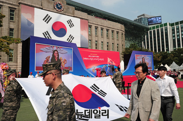 '제66주년 서울수복 기념행사'가 24일 오전 서울광장 열렸다. 이날 행사에는 다양한 안보체험·전시, 의장대 시범공연, 중앙청 태극기 게양 등이 진행됐다.