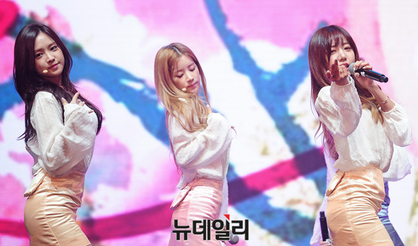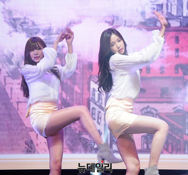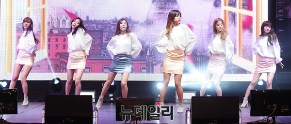 걸그룹 '에이핑크(APINK : 박초롱, 윤보미, 정은지, 손나은, 김남주, 오하영)'가 26일 오후 서울 건국대학교 새천년관 대공연장에서 열린 정규 3집 '핑크레볼루션(Pink Revolution)' 발매 기념 쇼케이스에서 신곡을 선보이고 있다.