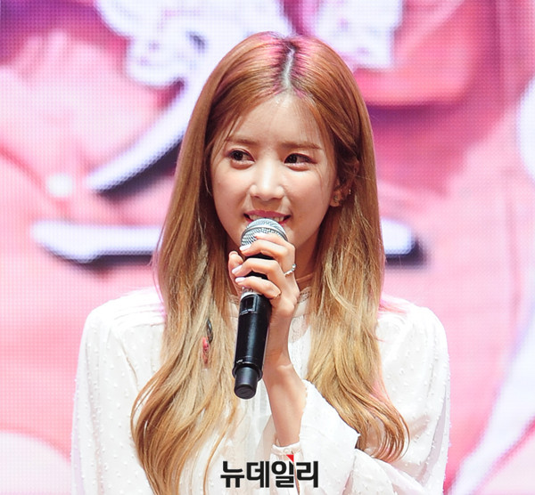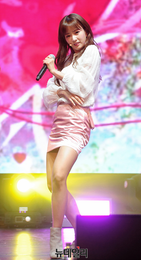 걸그룹 '에이핑크(APINK : 박초롱, 윤보미, 정은지, 손나은, 김남주, 오하영)' 윤보미가 26일 오후 서울 건국대학교 새천년관 대공연장에서 열린 정규 3집 '핑크레볼루션(Pink Revolution)' 발매 기념 쇼케이스에 참석해 신곡을 선보이고 있다.