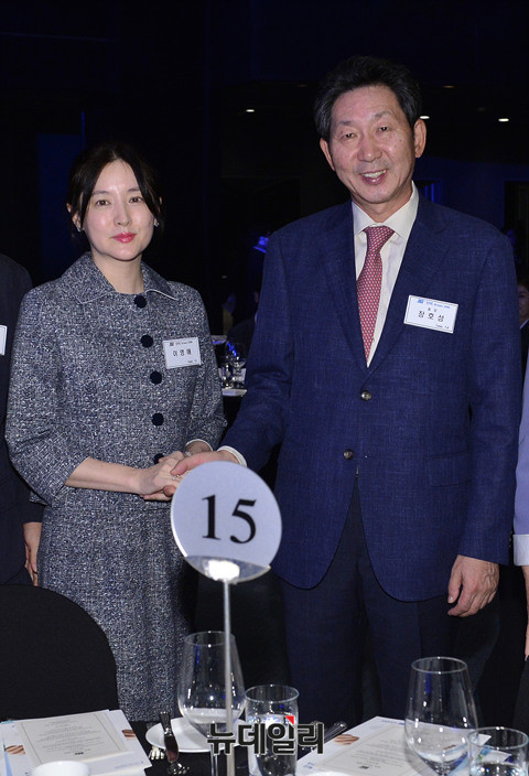 배우 이영애와 남편 정호영씨가 27일 오후 그랜드하얏트서울 호텔에서 열린 단국대학교 후원의 밤 '단국, Dream 2016' 행사에 참석해 장호성 총장과 인사를 나누고 있다.