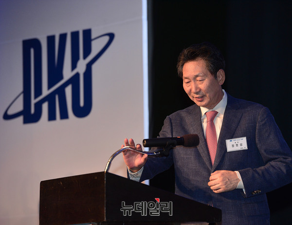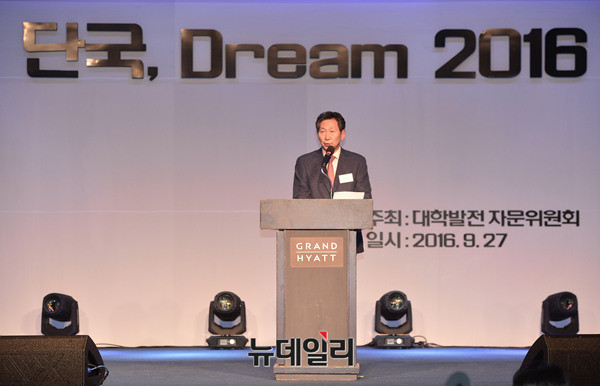 장호성 단국대학교 총장이 27일 오후 그랜드하얏트서울 호텔에서 열린 후원의 밤 '단국, Dream 2016' 행사에서 축사를 하고 있다.