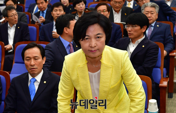 더불어민주당 추미애 대표가 28일 오전 국회에서 열린 의원총회에서 모두발언을 하기위해 단상으로 향하고 있다.