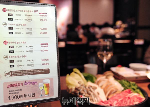 '김영란법(부정청탁금지법)' 시행 첫 날인 28일 오후 서울 용산구의 한 프랜차이즈 식당에서 1인 기준 19,920원의 신메뉴를 선보이고 있다. '김영란법' 시행으로 식당들은 회식이나 접대 시에도 부담 없이 찾을 수 있는 대안이 될만한 메뉴를 제시하고 있다.