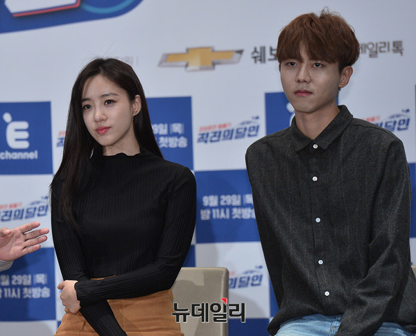 티아라 은정이 29일 오전 광화문 씨네큐브에서 열린 '직진의달인' 기자간담회에서 운전에 관한 질문을 듣고 있다.