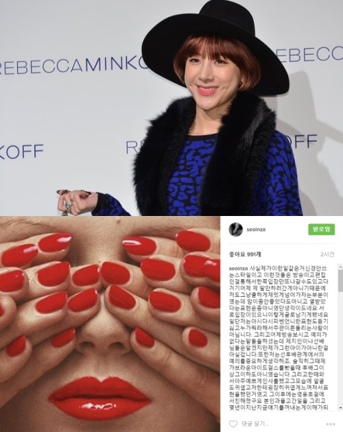 이후 해당 글이 더욱 논란을 키우자 서인영은 다시 인스타그램에 "선배 따지는 선배는 꼰대, 나이 많은 후배는 예의없게 해도 대접해줘라? 선배답게 행동해라? 이건 무슨 논리인가요?"라며 심경을 토로했다.그는 "가인은 대기할 때 '요즘 후배들은요 언니. 이런 행동 저런 행동' 얘기하는데 이제 완전 대선배 마인드이던데 다른 후배가 이렇게 했다면 참았을까요?"라며 "제가 어떤 이미지로 보인다 해도 어떤 일이든 똑바로 알아야 한다고 생각한다. 개인적으로 이미지 높이고 싶어서 어떤 이미지를 만들려고 노력한 적도 없다. 전 그냥 접니다"라는 글을 추가했다.앞서 28일 MBC '라디오스타'에서 가인은 서인영이 과거 나르샤에게 반말을 한 일화를 공개하며 "팀 언니들이다 보니 나이가 어린 서인영이 반말을 하니 처음엔 열 받았다"고 밝혔다. 이에 서인영은 "열 받았었다고? 네가?"라고 발끈했고, 방송 이후 반말 논란에 휩싸였다.[서인영 해명, 사진=뉴데일리 DB/서인영 인스타그램/MBC '라디오스타' 방송 캡처]