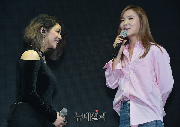 개그우먼 신보라가 4일 오후 서울 마포구 무브홀에서 열린 에일리 4번째 미니앨범 'A New Empire(어 뉴 엠파이어)' 쇼케이스에서 사회를 보고 있다.