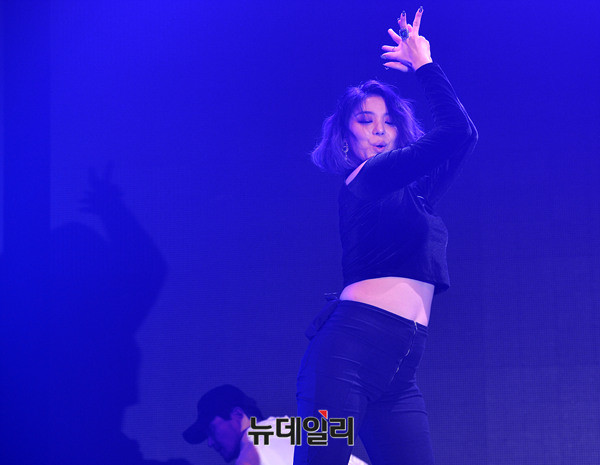 가수 에일리가 4일 오후 서울 마포구 무브홀에서 4번째 미니앨범 'A New Empire(어 뉴 엠파이어)' 쇼케이스에서 신곡 'Home'무대를 선보이고 있다.