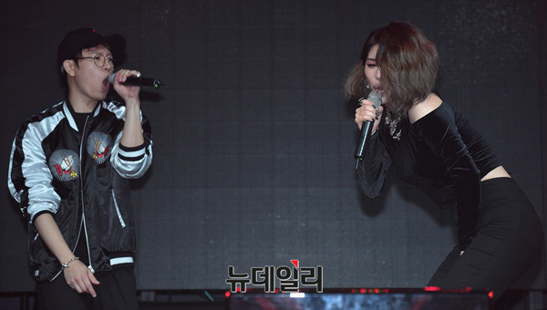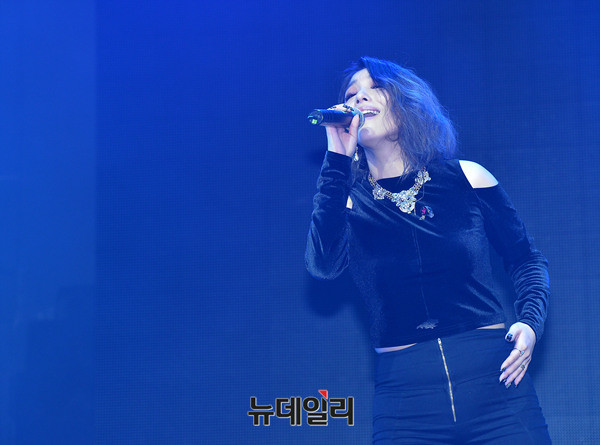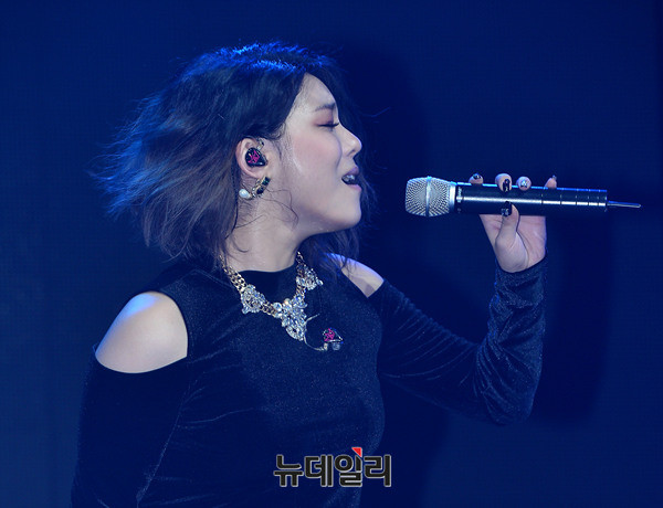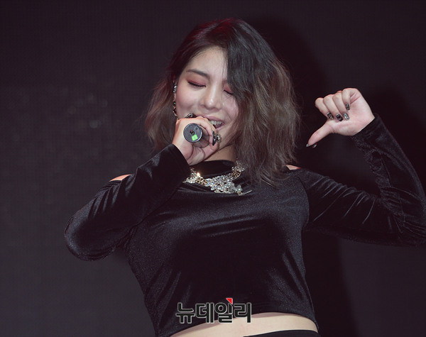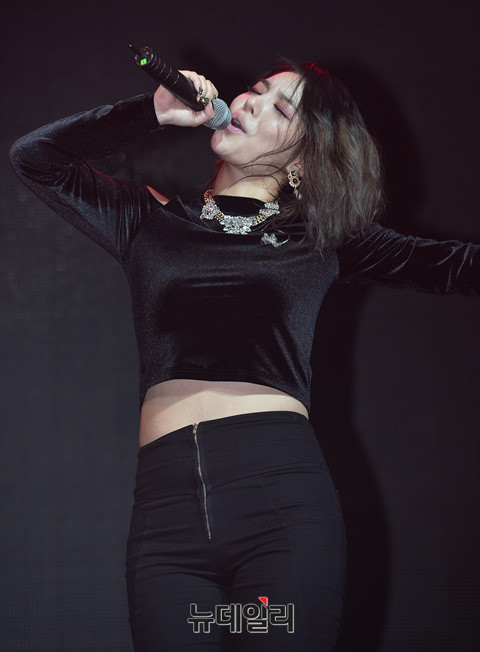 가수 에일리가 4일 오후 서울 마포구 무브홀에서 4번째 미니앨범 'A New Empire(어 뉴 엠파이어)' 쇼케이스에서 신곡 'Live or Die'를 열창하고 있다. 사회는 개그우먼 신보라가 맡았다.