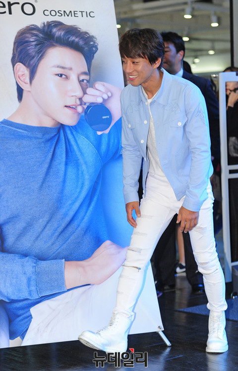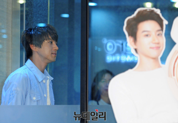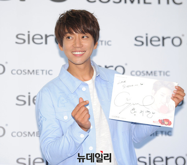 가수 황치열이 5일 오후 '시에로 코스메틱(Sierocosmetic)' 플래그쉽 스토어 삼성점 오픈 기념 팬사인회에 참석해 팬들에게 하트를 날리고 있다.