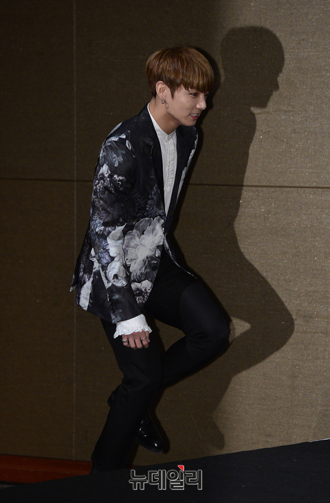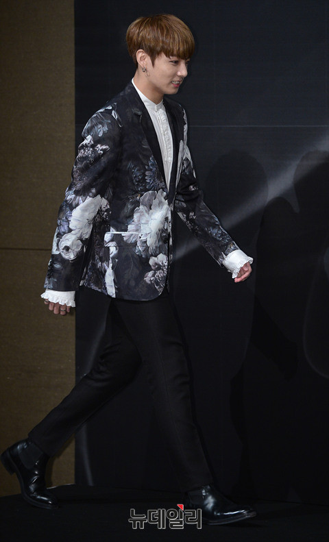 아이돌그룹 방탄소년단(랩몬스터, 슈가, 진, 제이홉, 지민, 뷔, 정국) 정국이 10일 오전 서울 중구 롯데호텔서울에서 열린 정규 2집 'WINGS' 기자간담회에 입장하고 있다. 지난 2014년 정규1집 '다크 앤 와일드(DARK&WILD)' 이후 2년 만에 발표하는 정규 앨범이다.