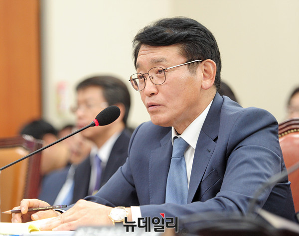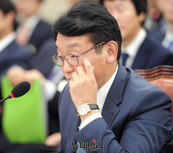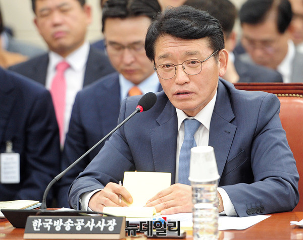 고대영 KBS 사장이 11일 오전 국회에서 열린 국회 미래창조과학방송통신위원회 한국방송공사(KBS) 등에 대한 국정감사에 출석해 질의에 답하고 있다. 이날 국정감사에는 고대영 KBS 사장 등을 비롯한 국회 미래창조과학방송통신위원회 소속 여야 의원들이 참석했다.