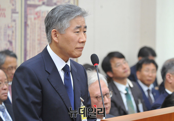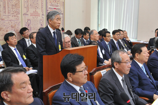 고 백남기 씨 치료를 맡은 백선하 서울대의대 교수가 11일 오전 국회에서 열린 교육문화체육관광위원회 국정감사에 참석해 의원들의 질문에 답하고 있다.