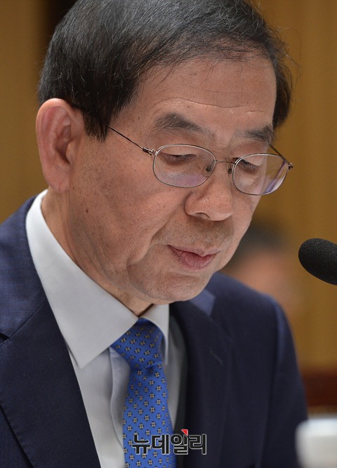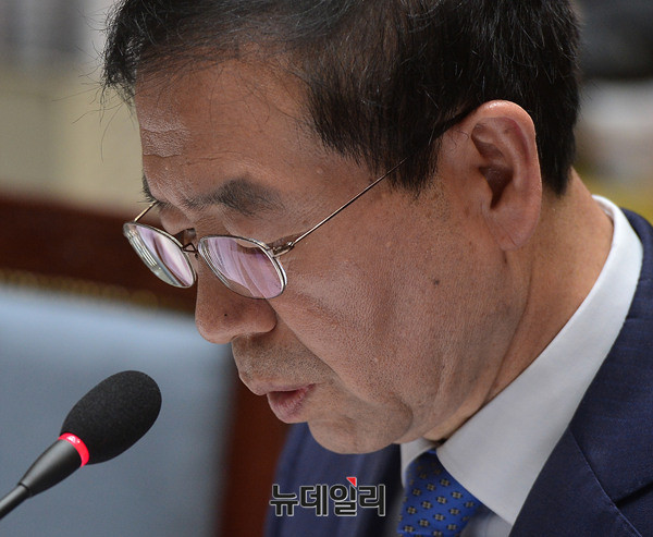 박원순 서울시장이 11일 서울시청 대회의실에서 열린 국회 국토교통위원회 국정감사에 참석해 질문에 답하고 있다.