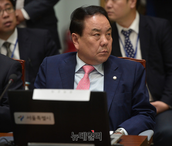 새누리당 이우현 의원이 11일 서울시청 대회의실에서 열린 국회 국토교통위원회 국정감사에 참석해 질의순서를 기다리고 있다.