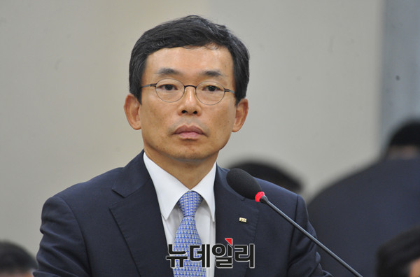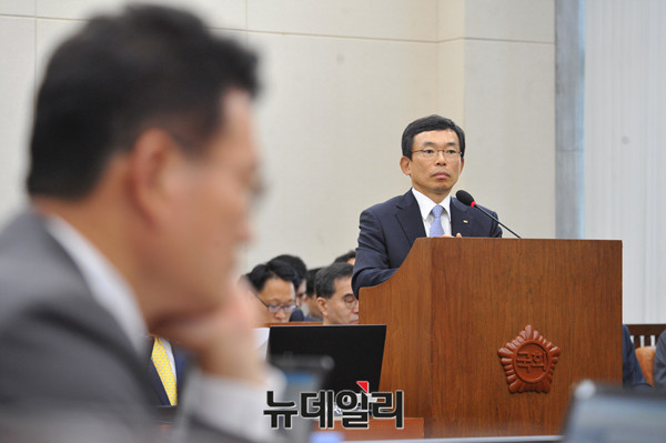 이승철 전국경제인연합회(전경련) 부회장이 12일 국회 기획재정위원회의 국정감사에 증인으로 출석해 의원들 질문에 답하고 있다.