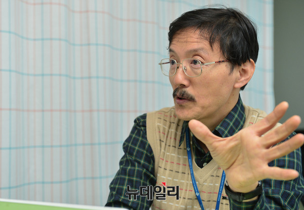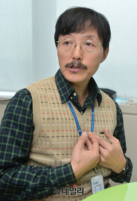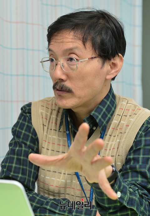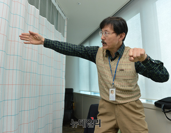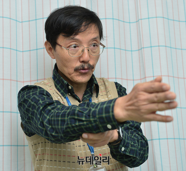 이용식 건국대학교병원 이비인후·두경부외과 교수와 故백남기 씨의 사인에 관한 인터뷰가 11일 오전 건국대학교의 한 사무실에서 진행됐다. 이 교수는 이날 인터뷰를 통해 "당시 사고 현장에서 목격된 '빨간 우의'를 입은 남성이야말로 백남기씨 사망 사건의 유력한 용의자"라고 주장하며 직접만든 영상부검 자료를 공개했다.