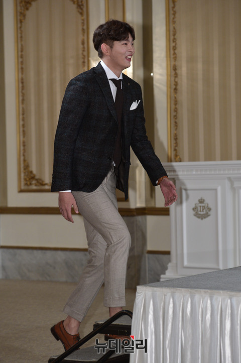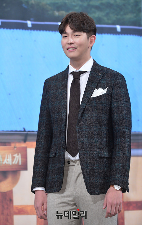 배우 윤균상이 13일 오후 서울 강남구 임피리얼팰리스 호텔에서 열린 tvN '삼시세끼-어촌편3' 제작발표회에서 포토타임을 갖고 있다.