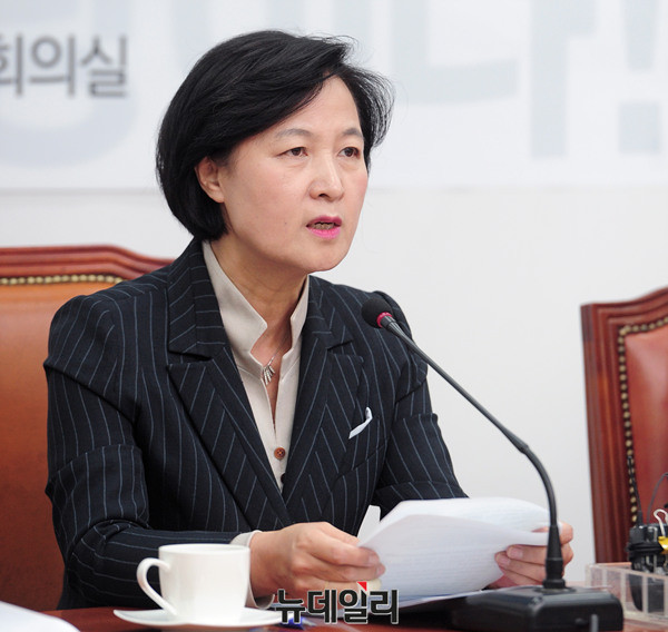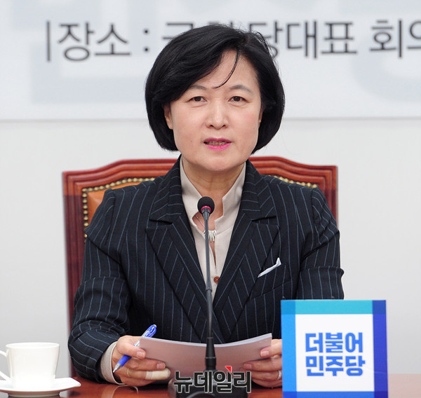 더불어민주당 추미애 대표가 13일 오후 국회에서 열린 '해상주권 지키기 긴급좌담회'에서 발언하고 있다.