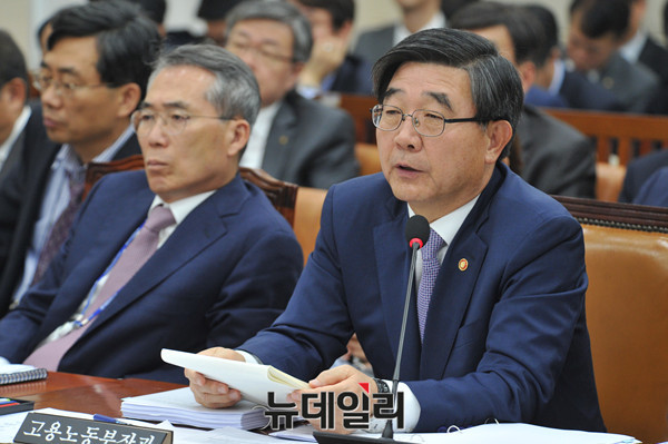 이기권 고용노동부 장관이 13일 오전 국회에서 열린 환경노동위원회 국정감사에서 질의에 답하고 있다.