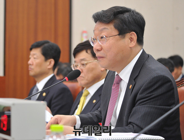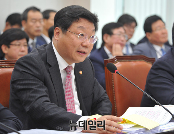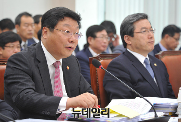 주형환 산업통상자원부 장관이 14일 오전 국회에서 열린 종합국정감사에서 의원의 질문을 경청하고 있다.