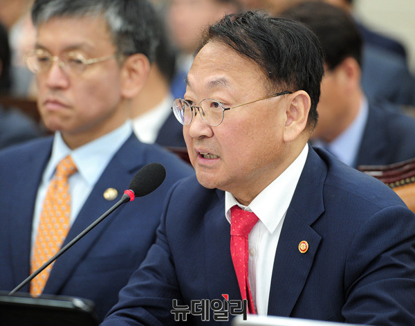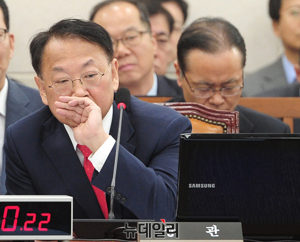 유일호 경제부총리 겸 기획재정부 장관이 14일 오전 국회에서 열린 기획재정부, 한국은행, 한국수출입은행 등에 대한 국정감사에 출석해 질의에 답하고 있다.