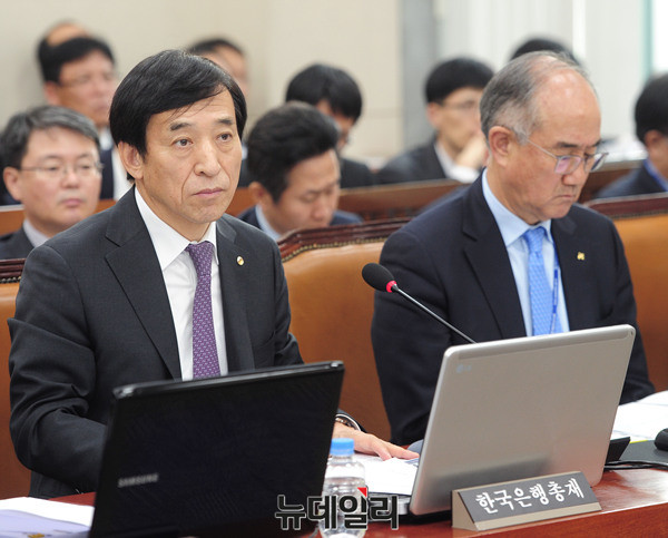 이주열 한국은행총재가 14일 오전 국회에서 열린 기획재정부, 한국은행, 한국수출입은행 등에 대한 국정감사에 출석해 질의에 답하고 있다.
