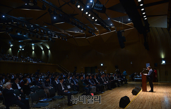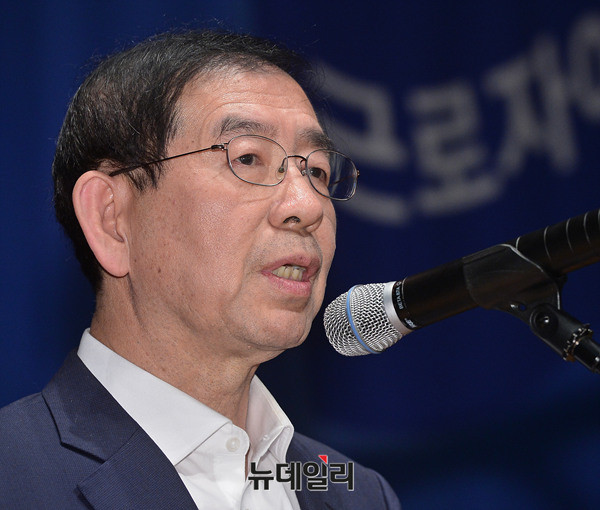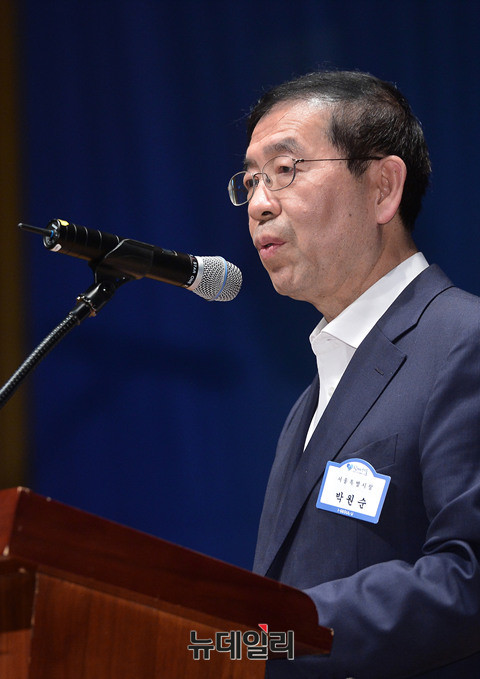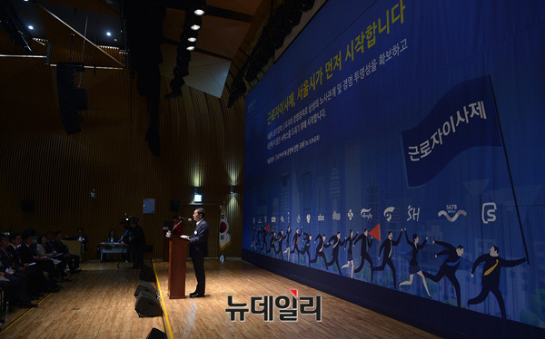 박원순 서울시장이 17일 오후 서울시청 다목적홀에서 열린 '근로자이사제 기념식'에서 환영사를 하고 있다.